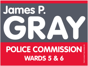 My name is James P (Jim) Gray. I am asking for your vote to represent you as the Wards 5 and 6 Police Commissioner.